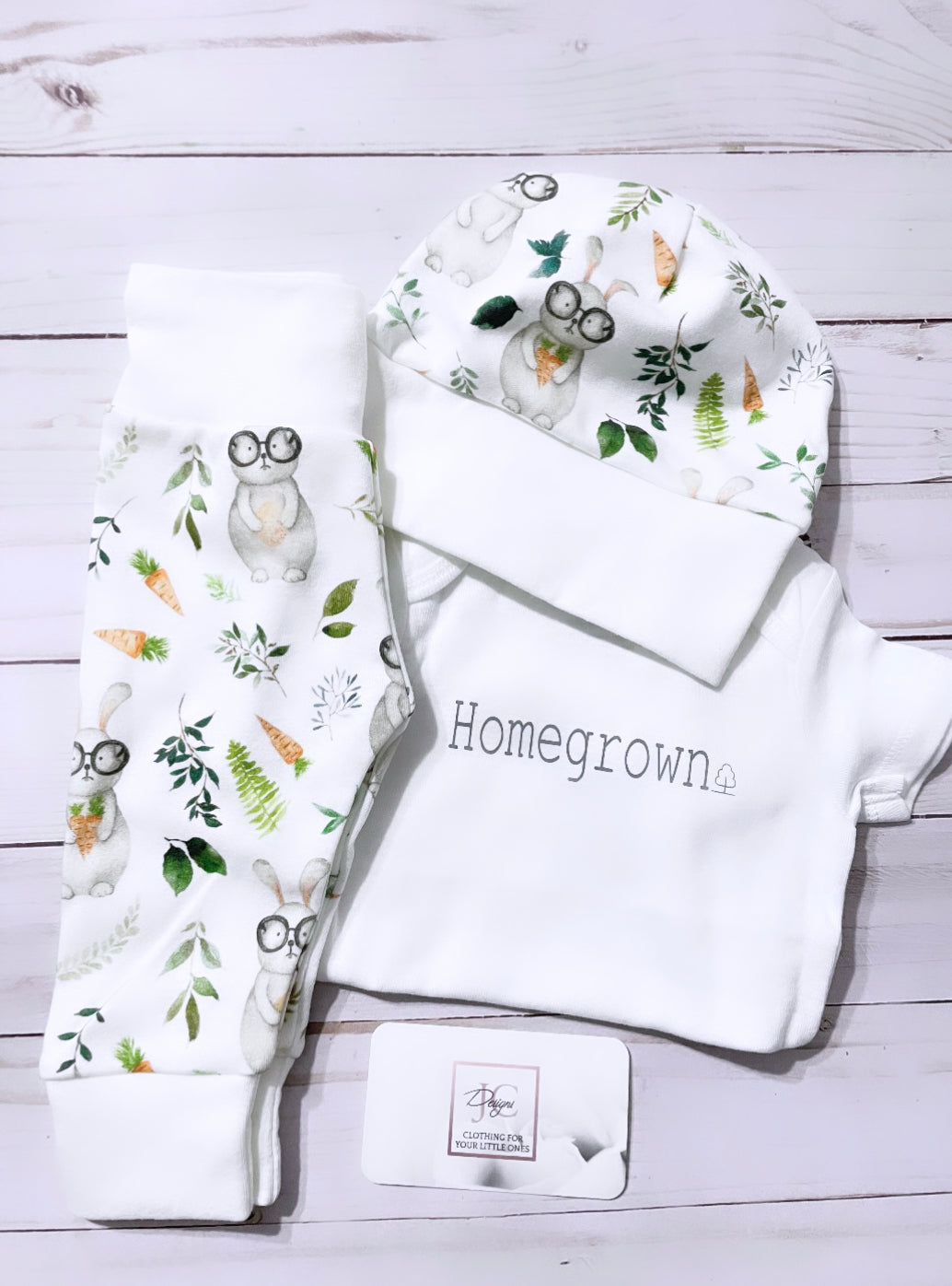 Each piece is handmade in Ontario, Canada, our organic cotton clothing is designed for comfort, cuteness, and care—from their first day and beyond.