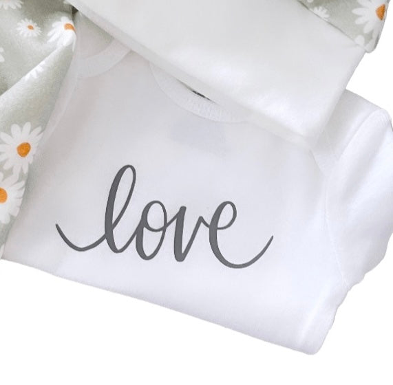 Nous créons nos designs sur les combinaisons de marque Carter's avec du H TV de haute qualité. (Vinyle à transfert thermique) cette combinaison est 100% coton.