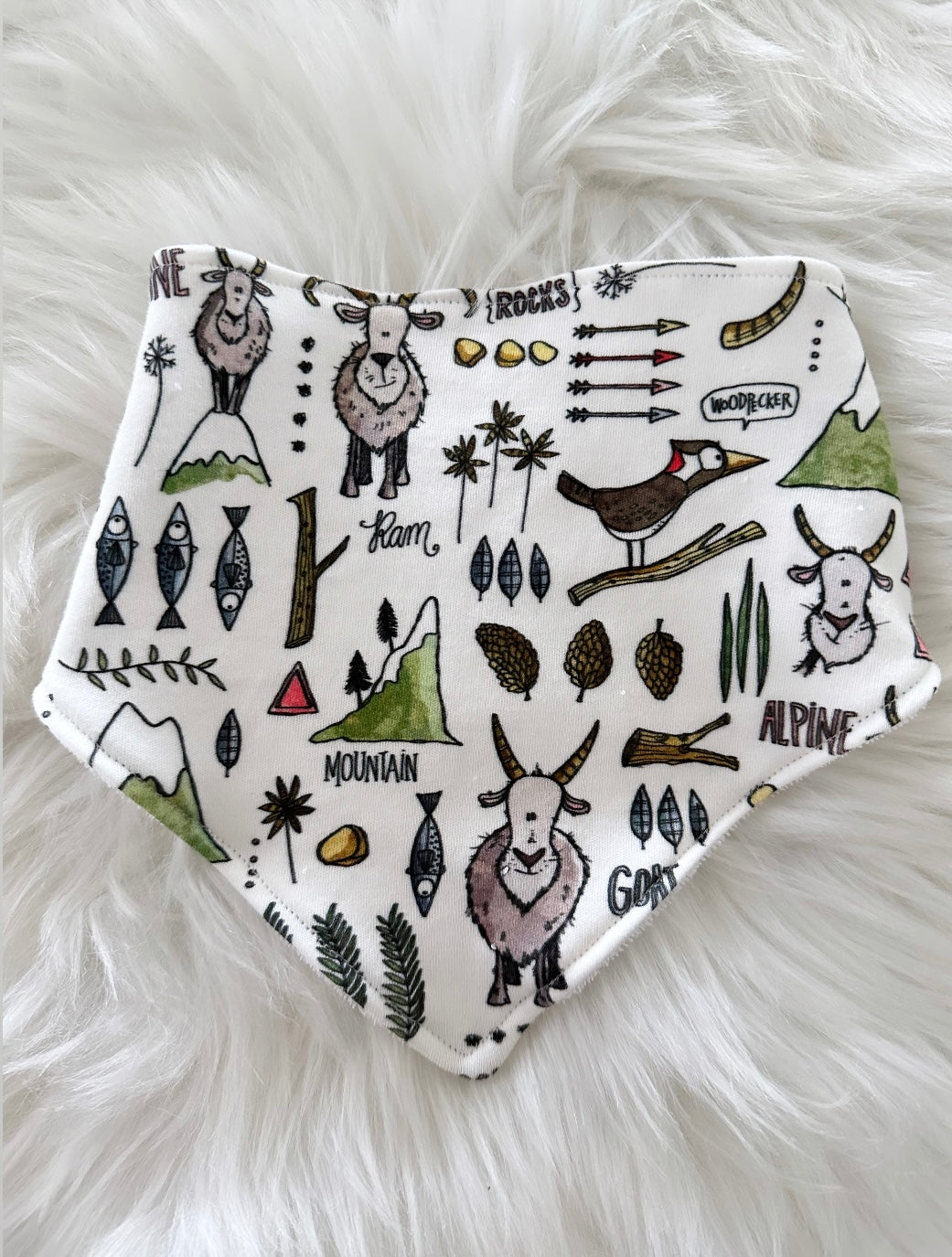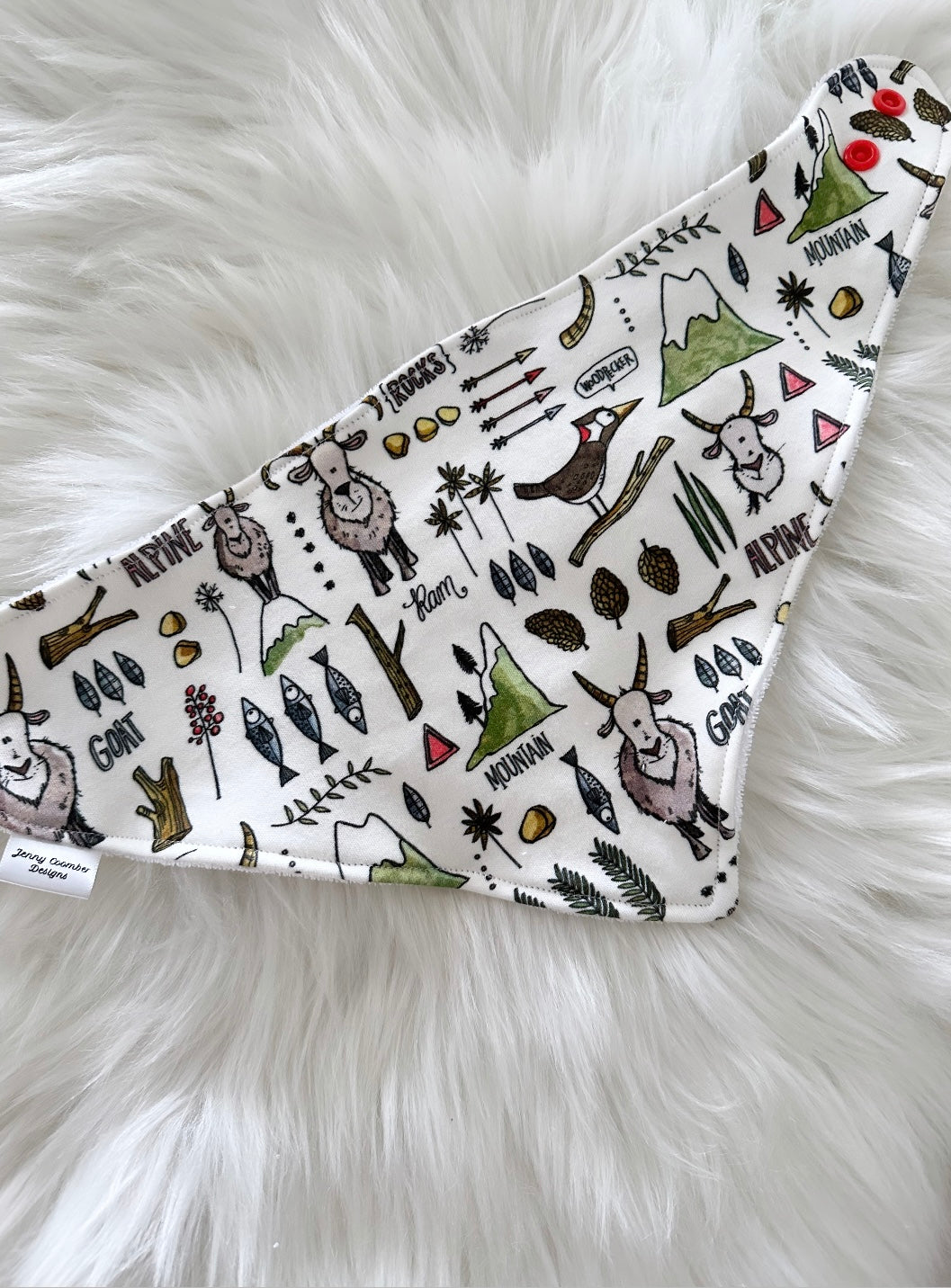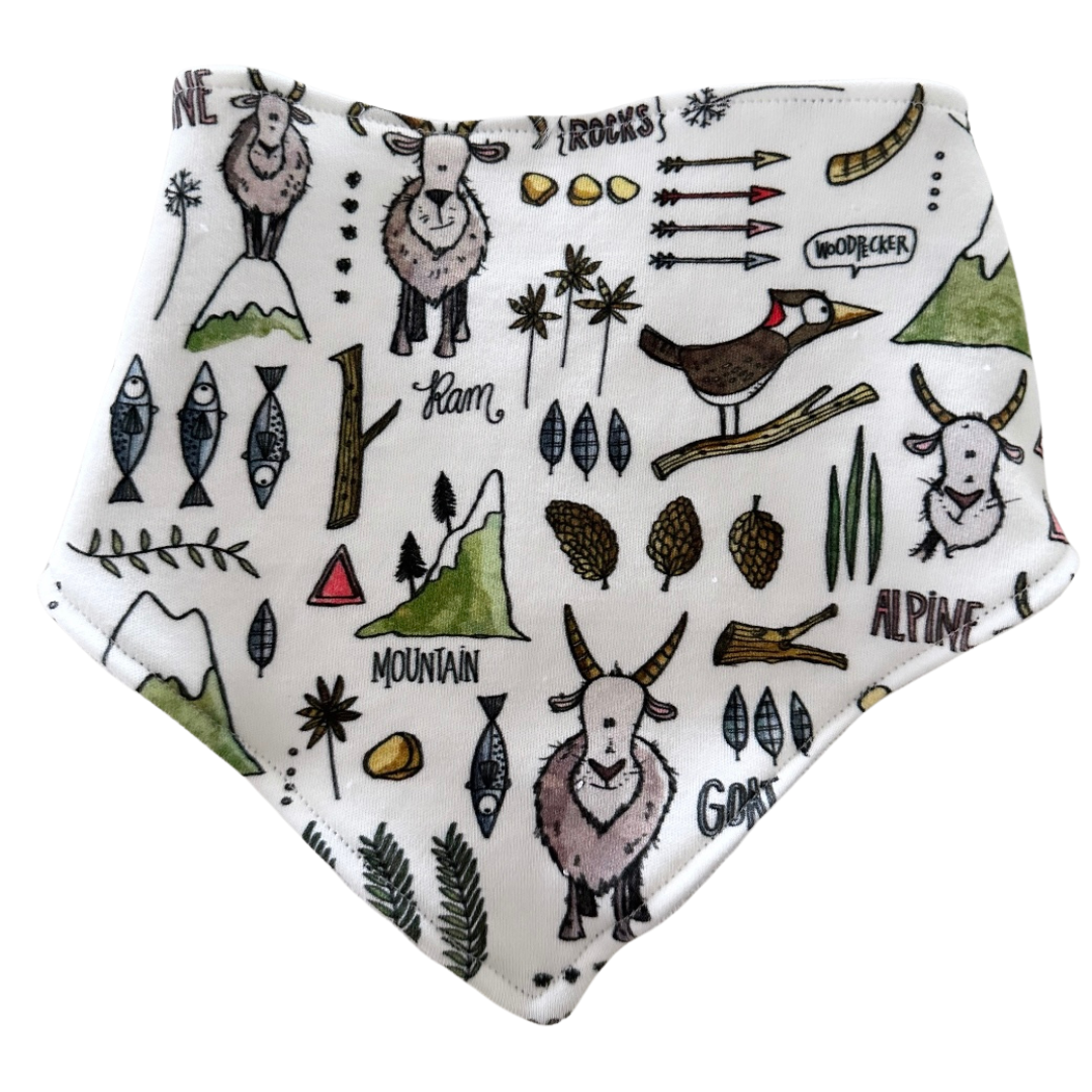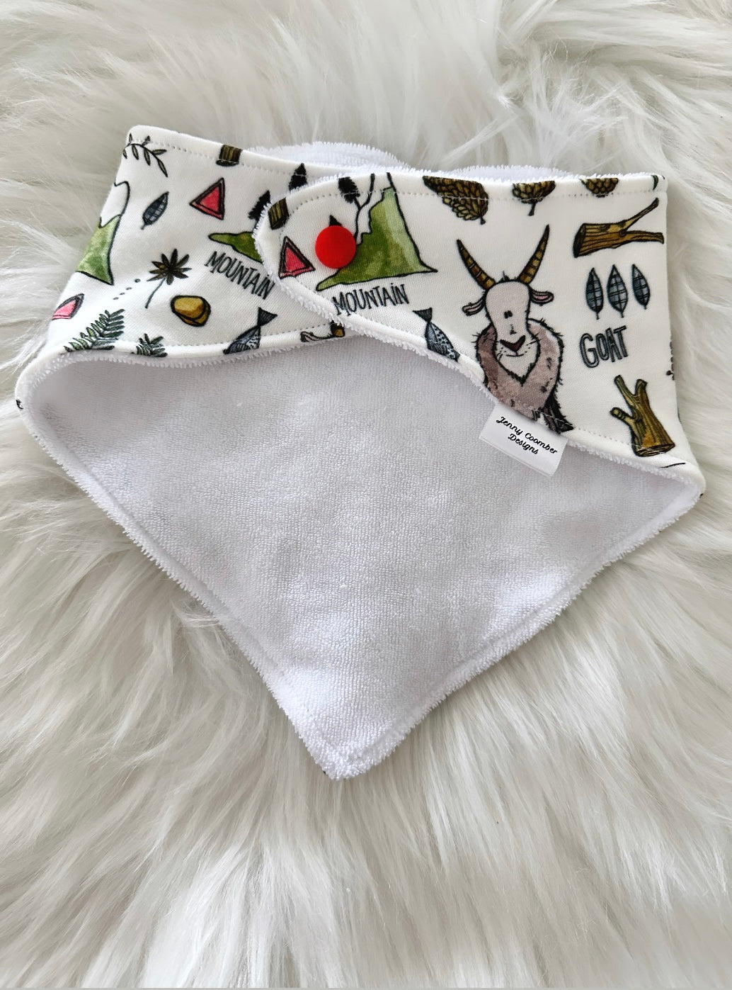 This stylish bandana bib is the perfect accessory for your little one, it is not only cute but is absorbent for any little messes that your baby may make. The front is organic cotton and the back is a super absorbent terry cloth fabric. There is two snaps on the back so you can adjust the size so they can be used from birth until around four years old