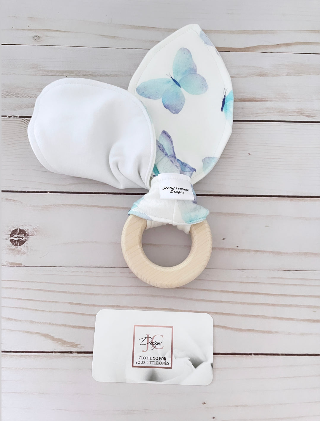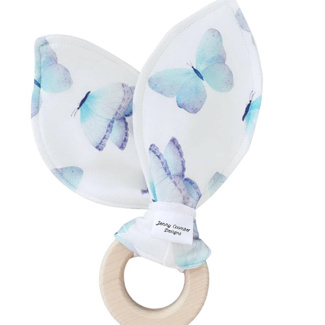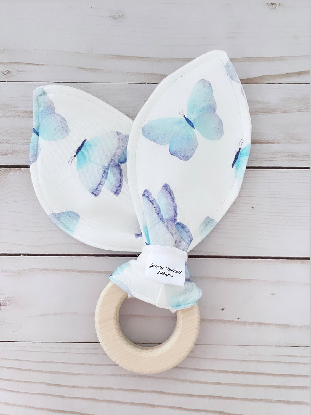 Our butterfly bunny ear Teether is great for soothing gums and sensory play!