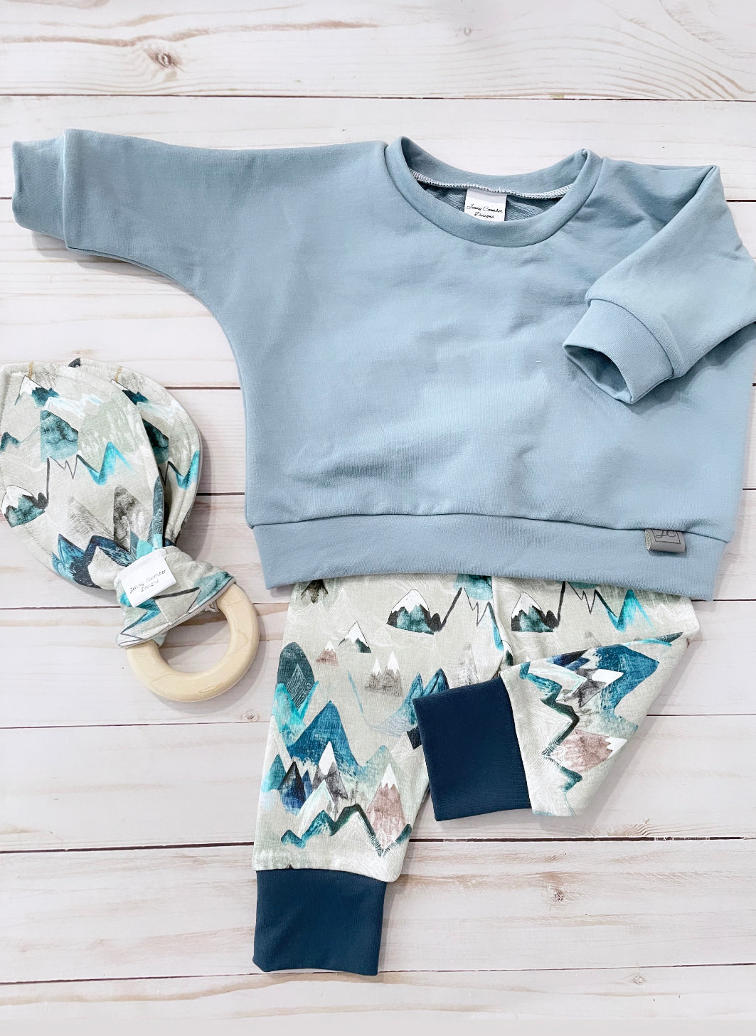 Our cozy cotton crew is the perfect everyday layer for babies and toddlers. Made from premium French terry, it’s soft, breathable, and smooth on the outside with gentle loops on the inside — not fluffy like fleece. This makes it comfortable year-round: warm enough for cool days and breathable for active play.