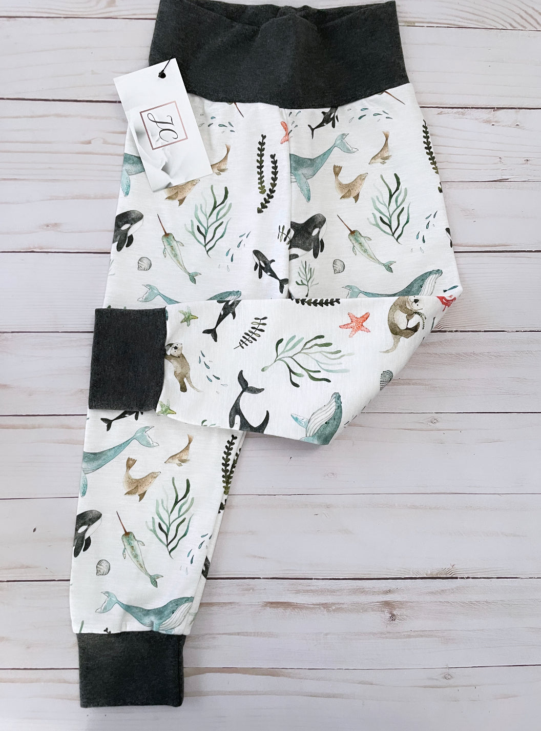 - Fabric: 100% Organic Cotton print, waist 95% organic cotton 5% spandex. Eco friendly, water based ink.